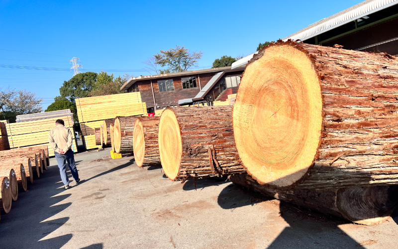 一本の丸太から価値を最大化するため、柾目を取った後の部材も用途に応じて活用し、無駄を最小限に抑えます。杉の高樹齢材は自然乾燥でも反りや割れが出にくく、時間をかけて水分を均等に抜くことで独特の質感と耐久性が生まれます。