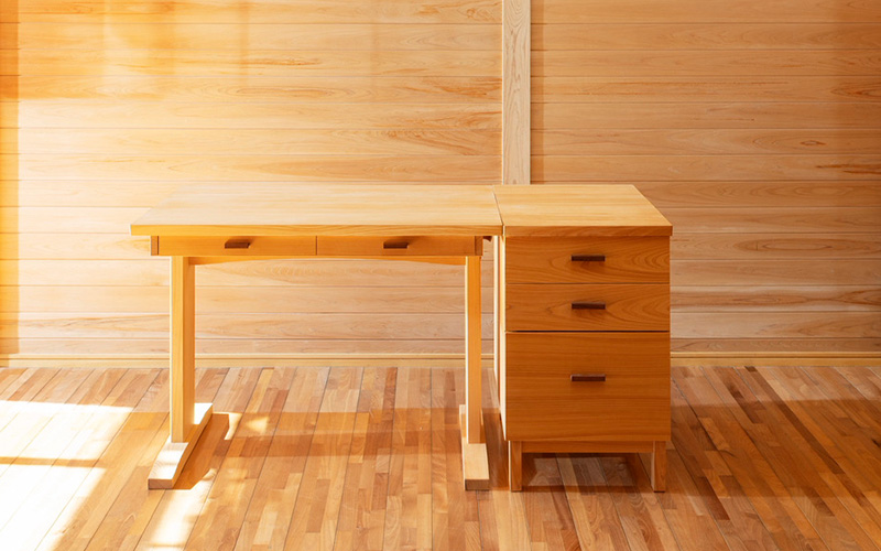 百年木材が手がけた檜のデスクとチェストは、「長く使い続けられること」を前提に設計された家具です。