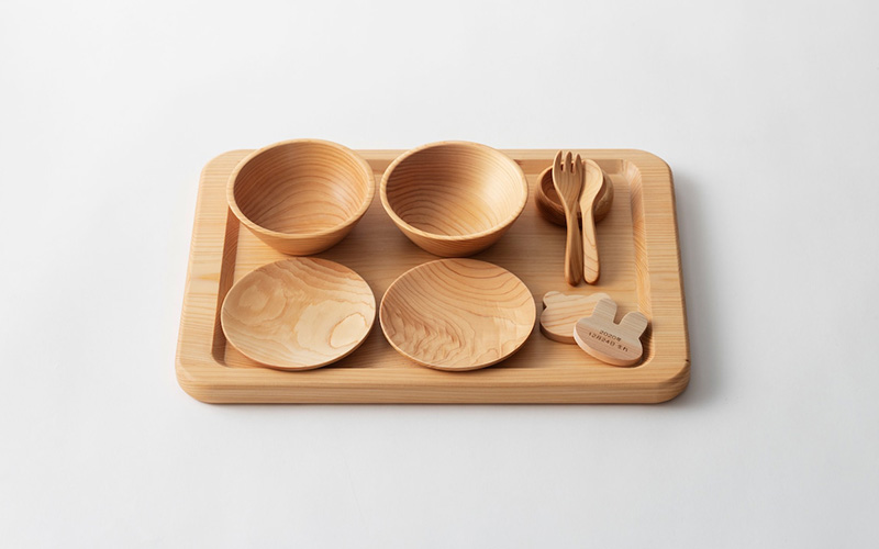 ギフトにも人気|百年木材の【檜】お食い初めセット